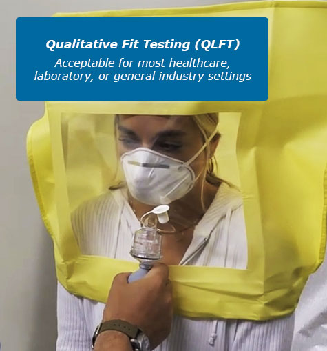 Qualitative Fit Testing is a pass/fail test method that uses your sense of taste or smell to detect leakage and is typically used for respirators such as N95s or other disposable filtering facepiece respirators.